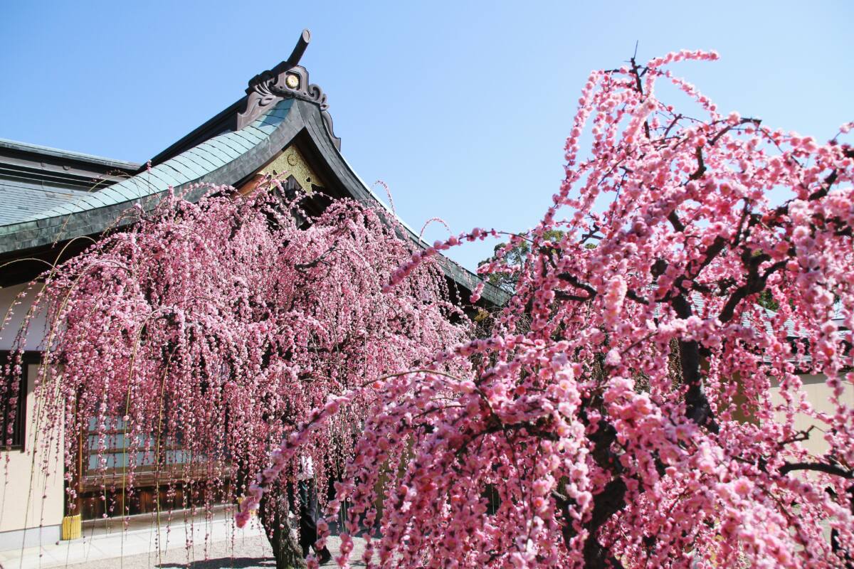 しだれ梅の開花便り(津市・結城神社)